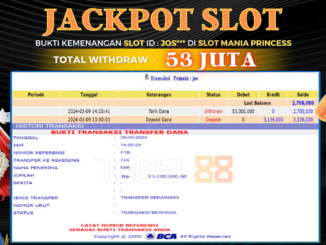TOGEL88 JACKPOT SLOT DI SLOT MANIA PRINCESS Rp 53.000.000,- LUNAS