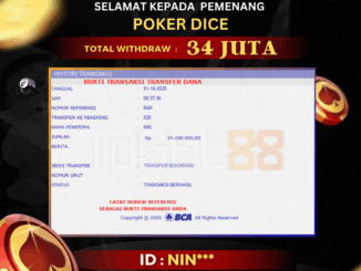 TOGEL88 JACKPOT LIVE CASINO DI POKER DICE Rp 34.000.000,- LUNAS