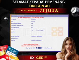 TOGEL88 JACKPOT TOGEL DI OREGON 4D Rp 71.000.000,- LUNAS