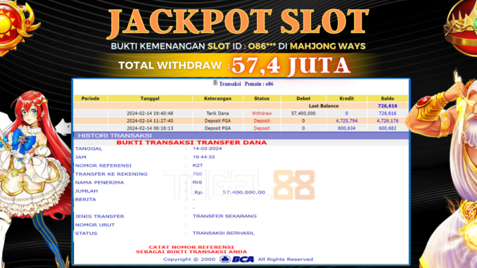 MEMBER TOGEL88 MENERIMA PELUNASAN TOGEL88 JACKPOT SLOT di MAHJONG WAYS Rp 57.400.000,- LUNAS