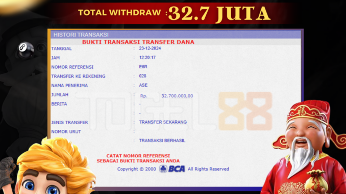 TOGEL88 mengucapkan selamat kepada user id : ASE*** yang telah berhasil mendapatkan jackpot pada permainan SLOT DI GATES OF GATOT KACA. Kemenangan sebesar Rp 32.700.000,-. telah dibayarkan LUNAS oleh pihak TOGEL88 kepada pemilik user id setelah yang bersangkutan mengisi formulir withdraw. Proses pencairan dana berlangsung sangat cepat hanya dalam waktu 5-10 menit sudah berada dalam rekening pemilik user id. Bukti transfer yang dapat anda lihat adalah bukti SAH / VALID yang langsung di dapatkan melalui bukti transaksi dari Bank yang digunakan untuk pengiriman dana pada rekening pemilik user id. Terima kasih kami sampaikan kepada para pengguna setia TOGEL88 yang telah menggunakan situs kami, sebagai Bandar Terpercaya yang pastinya membayar semua kemenangan member hingga lunas. Apakah TOGEL88 PENIPU ? Reputasi “TOGEL88 TERPERCAYA” sudah sangat melekat. puluhan hingga ratusan ribu pengguna setia TOGEL88 tetap menggunakan situs terbesar dan terbaik di Indonesia ini. Hapus rasa was-was dan khawatir anda, kemenangan anda berapapun PASTI dibayarkan hingga lunas.
