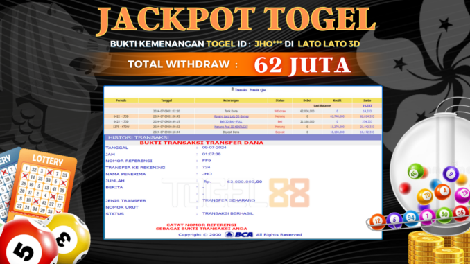TOGEL88 JACKPOT TOGEL di LATO LATO 3D Rp 62.000.000,- LUNAS