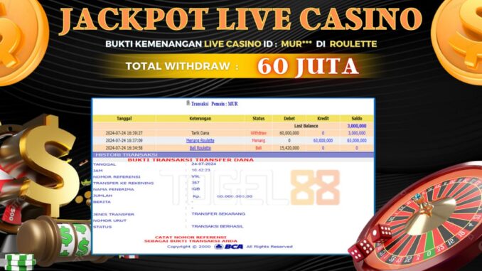 TOGEL88 JACKPOT LIVE CASINO DI ROULETTE Rp 60.000.000,- LUNAS