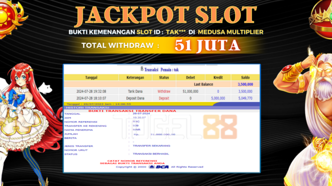 TOGEL88 JACKPOT SLOT DI MEDUSA MULTIPLIER Rp 51.000.000,- LUNAS