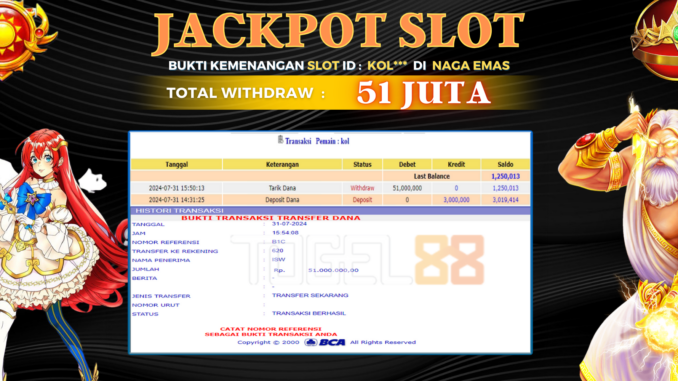 TOGEL88 JACKPOT SLOT DI NAGA EMAS Rp 51.000.000,- LUNAS