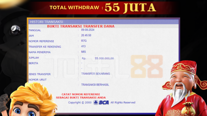 TOGEL88 mengucapkan selamat kepada user id : FUC*** yang telah berhasil mendapatkan jackpot pada permainan SLOT DI POWER OF ODIN. Kemenangan sebesar Rp 55.000.000,-. telah dibayarkan LUNAS oleh pihak TOGEL88 kepada pemilik user id setelah yang bersangkutan mengisi formulir withdraw. Proses pencairan dana berlangsung sangat cepat hanya dalam waktu 5-10 menit sudah berada dalam rekening pemilik user id. Bukti transfer yang dapat anda lihat adalah bukti SAH / VALID yang langsung di dapatkan melalui bukti transaksi dari Bank yang digunakan untuk pengiriman dana pada rekening pemilik user id. Terima kasih kami sampaikan kepada para pengguna setia TOGEL88 yang telah menggunakan situs kami, sebagai Bandar Terpercaya yang pastinya membayar semua kemenangan member hingga lunas. Apakah TOGEL88 PENIPU ? Reputasi “TOGEL88 TERPERCAYA” sudah sangat melekat. puluhan hingga ratusan ribu pengguna setia TOGEL88 tetap menggunakan situs terbesar dan terbaik di Indonesia ini. Hapus rasa was-was dan khawatir anda, kemenangan anda berapapun PASTI dibayarkan hingga lunas.