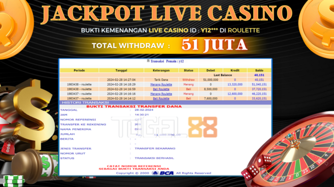 TOGEL88 JACKPOT LIVE CASINO DI ROULETTE Rp 51.000.000,- LUNAS