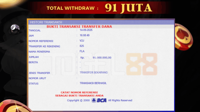 TOGEL88 mengucapkan selamat kepada user id : TIM*** yang telah berhasil mendapatkan jackpot pada permainan TOGEL DI TOTOMACAU 5D. Kemenangan sebesar Rp 91.000.000,-. telah dibayarkan LUNAS oleh pihak TOGEL88 kepada pemilik user id setelah yang bersangkutan mengisi formulir withdraw. Proses pencairan dana berlangsung sangat cepat hanya dalam waktu 5-10 menit sudah berada dalam rekening pemilik user id. Bukti transfer yang dapat anda lihat adalah bukti SAH / VALID yang langsung di dapatkan melalui bukti transaksi dari Bank yang digunakan untuk pengiriman dana pada rekening pemilik user id. Terima kasih kami sampaikan kepada para pengguna setia TOGEL88 yang telah menggunakan situs kami, sebagai Bandar Terpercaya yang pastinya membayar semua kemenangan member hingga lunas. Apakah TOGEL88 PENIPU ? Reputasi “TOGEL88 TERPERCAYA” sudah sangat melekat. puluhan hingga ratusan ribu pengguna setia TOGEL88 tetap menggunakan situs terbesar dan terbaik di Indonesia ini. Hapus rasa was-was dan khawatir anda, kemenangan anda berapapun PASTI dibayarkan hingga lunas.