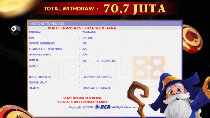TOGEL88 mengucapkan selamat kepada user id : ROB*** yang telah berhasil mendapatkan jackpot pada permainan LIVE CASINO DI HEAD TAIL. Kemenangan sebesar Rp 70.750.000,-. telah dibayarkan LUNAS oleh pihak TOGEL88 kepada pemilik user id setelah yang bersangkutan mengisi formulir withdraw. Proses pencairan dana berlangsung sangat cepat hanya dalam waktu 5-10 menit sudah berada dalam rekening pemilik user id. Bukti transfer yang dapat anda lihat adalah bukti SAH / VALID yang langsung di dapatkan melalui bukti transaksi dari Bank yang digunakan untuk pengiriman dana pada rekening pemilik user id. Terima kasih kami sampaikan kepada para pengguna setia TOGEL88 yang telah menggunakan situs kami, sebagai Bandar Terpercaya yang pastinya membayar semua kemenangan member hingga lunas. Apakah TOGEL88 PENIPU ? Reputasi “TOGEL88 TERPERCAYA” sudah sangat melekat. puluhan hingga ratusan ribu pengguna setia TOGEL88 tetap menggunakan situs terbesar dan terbaik di Indonesia ini. Hapus rasa was-was dan khawatir anda, kemenangan anda berapapun PASTI dibayarkan hingga lunas.