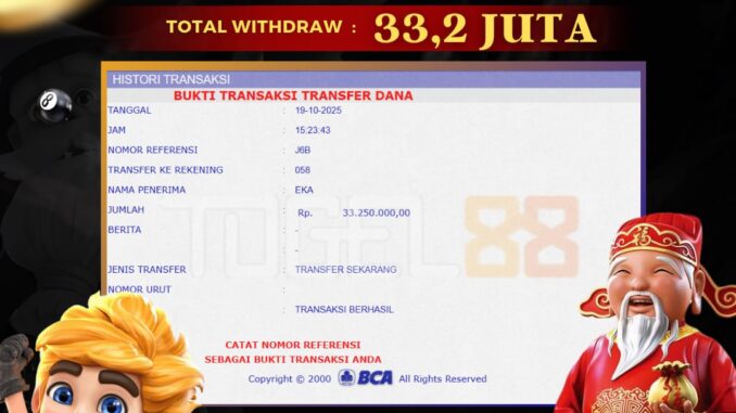 TOGEL88 mengucapkan selamat kepada user id : ULA*** yang telah berhasil mendapatkan jackpot pada permainan SLOT DI AZTEC GEMS. Kemenangan sebesar Rp 33.200.000,-. telah dibayarkan LUNAS oleh pihak TOGEL88 kepada pemilik user id setelah yang bersangkutan mengisi formulir withdraw. Proses pencairan dana berlangsung sangat cepat hanya dalam waktu 5-10 menit sudah berada dalam rekening pemilik user id. Bukti transfer yang dapat anda lihat adalah bukti SAH / VALID yang langsung di dapatkan melalui bukti transaksi dari Bank yang digunakan untuk pengiriman dana pada rekening pemilik user id. Terima kasih kami sampaikan kepada para pengguna setia TOGEL88 yang telah menggunakan situs kami, sebagai Bandar Terpercaya yang pastinya membayar semua kemenangan member hingga lunas. Apakah TOGEL88 PENIPU ? Reputasi “TOGEL88 TERPERCAYA” sudah sangat melekat. puluhan hingga ratusan ribu pengguna setia TOGEL88 tetap menggunakan situs terbesar dan terbaik di Indonesia ini. Hapus rasa was-was dan khawatir anda, kemenangan anda berapapun PASTI dibayarkan hingga lunas.