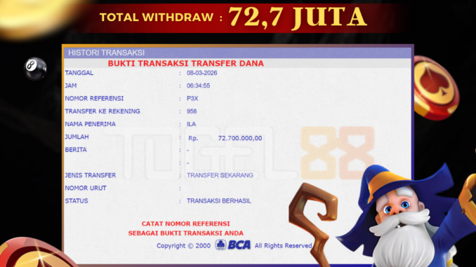 TOGEL88 mengucapkan selamat kepada user id : BUD*** yang telah berhasil mendapatkan jackpot pada permainan LIVE CASINO DI BACCARAT. Kemenangan sebesar Rp 72.700.000,-. telah dibayarkan LUNAS oleh pihak TOGEL88 kepada pemilik user id setelah yang bersangkutan mengisi formulir withdraw. Proses pencairan dana berlangsung sangat cepat hanya dalam waktu 5-10 menit sudah berada dalam rekening pemilik user id. Bukti transfer yang dapat anda lihat adalah bukti SAH / VALID yang langsung di dapatkan melalui bukti transaksi dari Bank yang digunakan untuk pengiriman dana pada rekening pemilik user id. Terima kasih kami sampaikan kepada para pengguna setia TOGEL88 yang telah menggunakan situs kami, sebagai Bandar Terpercaya yang pastinya membayar semua kemenangan member hingga lunas. Apakah TOGEL88 PENIPU ? Reputasi “TOGEL88 TERPERCAYA” sudah sangat melekat. puluhan hingga ratusan ribu pengguna setia TOGEL88 tetap menggunakan situs terbesar dan terbaik di Indonesia ini. Hapus rasa was-was dan khawatir anda, kemenangan anda berapapun PASTI dibayarkan hingga lunas.
