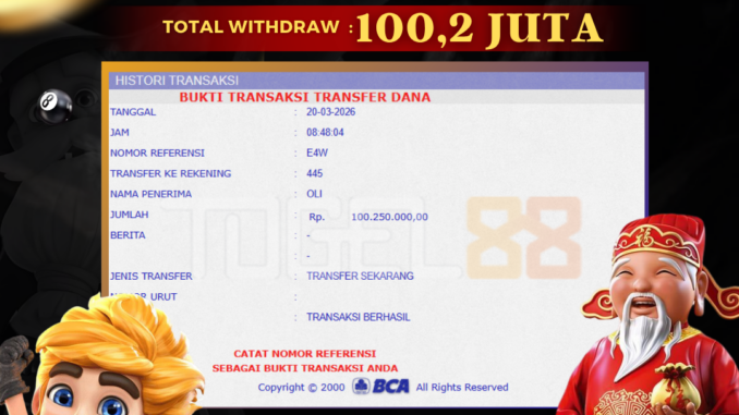 TOGEL88 mengucapkan selamat kepada user id : SAB*** yang telah berhasil mendapatkan jackpot pada permainan SLOT DI MAHJONG MANIA BLACK. Kemenangan sebesar Rp 100.200.000,-. telah dibayarkan LUNAS oleh pihak TOGEL88 kepada pemilik user id setelah yang bersangkutan mengisi formulir withdraw. Proses pencairan dana berlangsung sangat cepat hanya dalam waktu 5-10 menit sudah berada dalam rekening pemilik user id. Bukti transfer yang dapat anda lihat adalah bukti SAH / VALID yang langsung di dapatkan melalui bukti transaksi dari Bank yang digunakan untuk pengiriman dana pada rekening pemilik user id. Terima kasih kami sampaikan kepada para pengguna setia TOGEL88 yang telah menggunakan situs kami, sebagai Bandar Terpercaya yang pastinya membayar semua kemenangan member hingga lunas. Apakah TOGEL88 PENIPU ? Reputasi “TOGEL88 TERPERCAYA” sudah sangat melekat. puluhan hingga ratusan ribu pengguna setia TOGEL88 tetap menggunakan situs terbesar dan terbaik di Indonesia ini. Hapus rasa was-was dan khawatir anda, kemenangan anda berapapun PASTI dibayarkan hingga lunas.