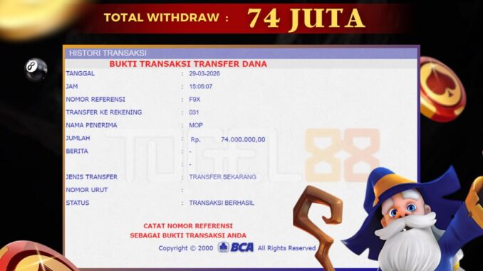 TOGEL88 mengucapkan selamat kepada user id : VIO*** yang telah berhasil mendapatkan jackpot pada permainan LIVE CASINO DI ROULETTE. Kemenangan sebesar Rp 74.000.000,-. telah dibayarkan LUNAS oleh pihak TOGEL88 kepada pemilik user id setelah yang bersangkutan mengisi formulir withdraw. Proses pencairan dana berlangsung sangat cepat hanya dalam waktu 5-10 menit sudah berada dalam rekening pemilik user id. Bukti transfer yang dapat anda lihat adalah bukti SAH / VALID yang langsung di dapatkan melalui bukti transaksi dari Bank yang digunakan untuk pengiriman dana udenlandske casinoer uden nemid pada rekening pemilik user id. Terima kasih kami sampaikan kepada para pengguna setia TOGEL88 yang telah menggunakan situs kami, sebagai Bandar Terpercaya yang pastinya membayar semua kemenangan member hingga fast paying casinos lunas. Apakah TOGEL88 PENIPU ? Reputasi “TOGEL88 TERPERCAYA” sudah sangat melekat. puluhan hingga ratusan ribu pengguna setia TOGEL88 tetap menggunakan udenlandske casinoer uden nemid situs terbesar dan terbaik di Indonesia ini. Hapus rasa was-was dan khawatir anda, kemenangan anda berapapun PASTI dibayarkan hingga lunas.