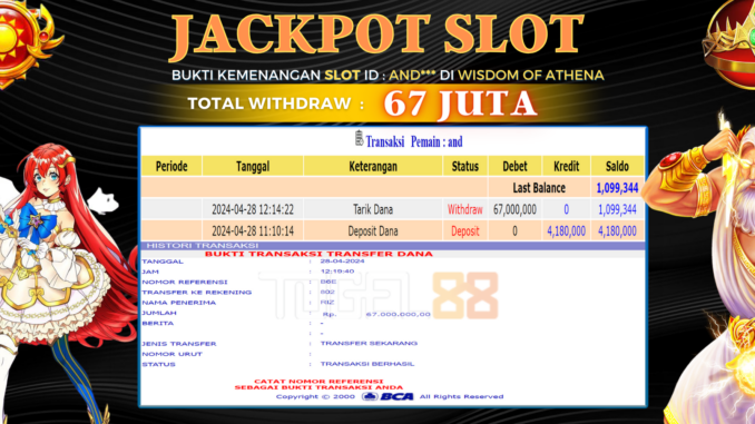 TOGEL88 JACKPOT SLOT DI WISDOM OF ATHENA Rp 67.000.000,- LUNAS