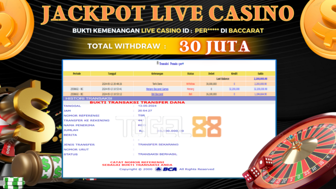 TOGEL88 JACKPOT LIVE CASINO DI BACCARAT Rp 30.000.000,- LUNAS