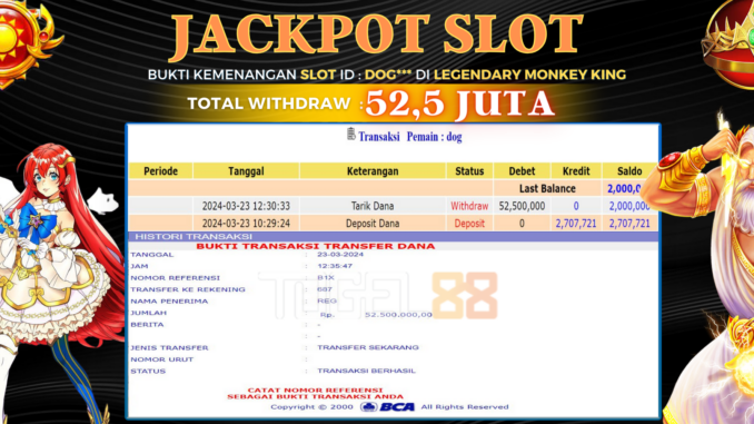 TOGEL88 JACKPOT SLOT DI LEGENDARY MONKEY KING Rp 52.500.000,- LUNAS