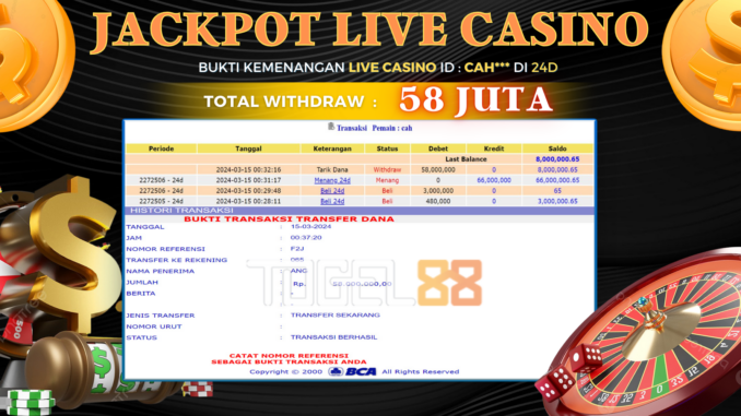 TOGEL88 JACKPOT LIVE CASINO DI 24D Rp 58.000.000,- LUNAS