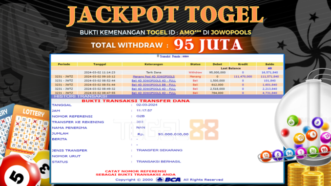 TOGEL88 JACKPOT TOGEL DI JOWOPOOLS Rp 95.000.000,- LUNAS