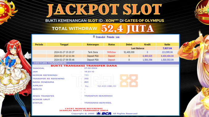 TOGEL88 JACKPOT SLOT DI GATES OF OLYMPUS Rp 52.400.000,- LUNAS