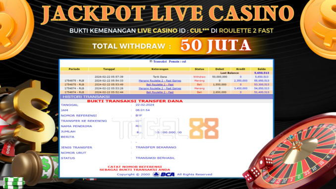 TOGEL88 JACKPOT LIVE CASINO DI ROULETTE 2 FAST Rp 50.000.000,- LUNAS